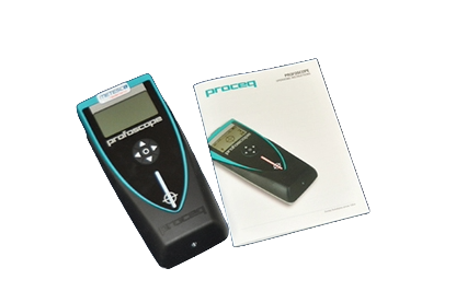 Das Proceq Profoscope ist ein handliches Bewehrungssuchgerät zum Auffinden von Bewehrungsstäben in Betonobjekten. Es kann auch verwendet werden, um die Betondeckung über den Stäben zu bestimmen. Die Genauigkeit beträgt ± 2 mm (bis zu 100 mm Tiefe) und ± 4 mm (bis zu 180 mm Tiefe).