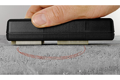 Das Gerät misst bis zu einem Feuchtigkeitsgehalt von 6 % im Beton.