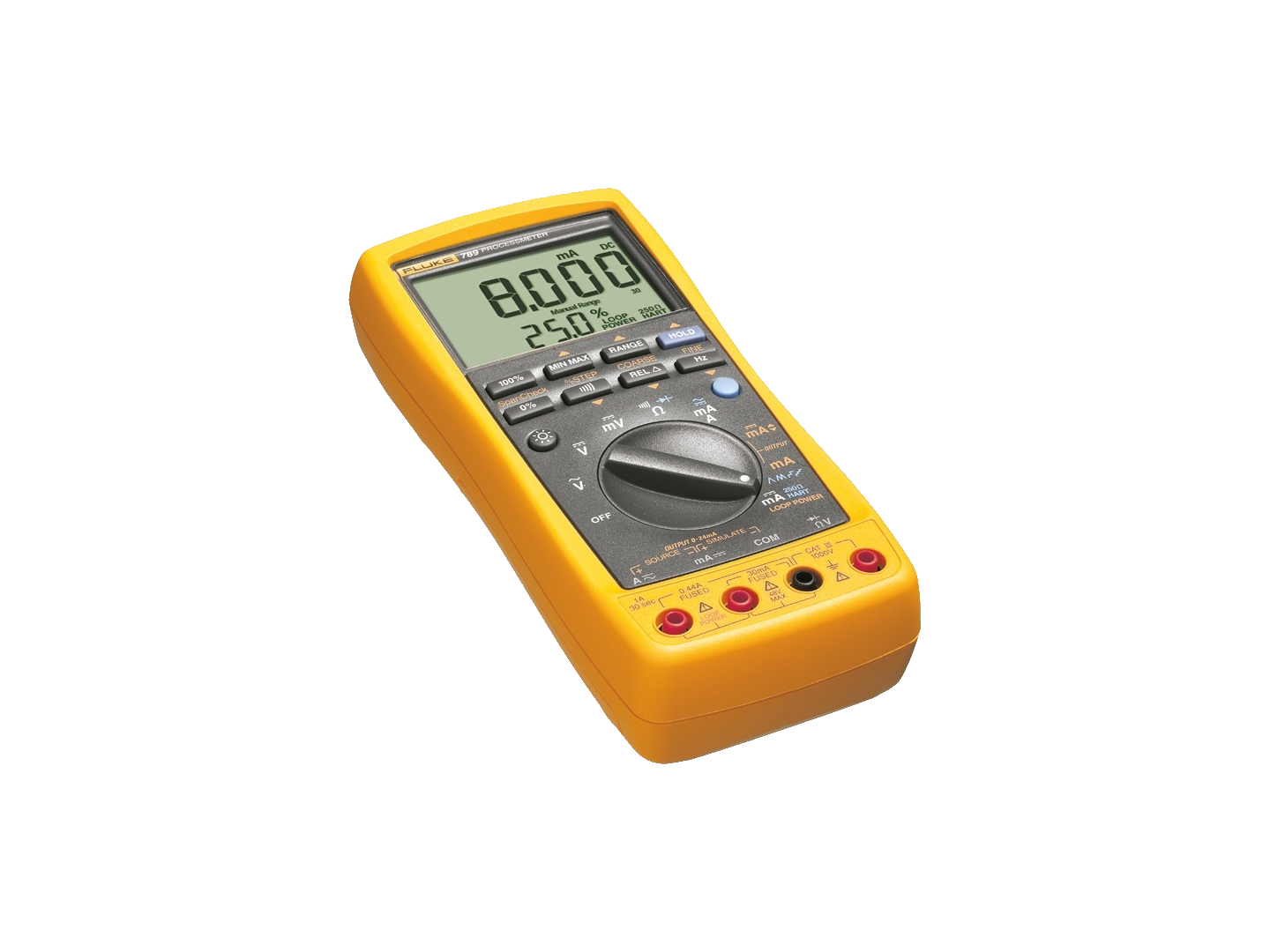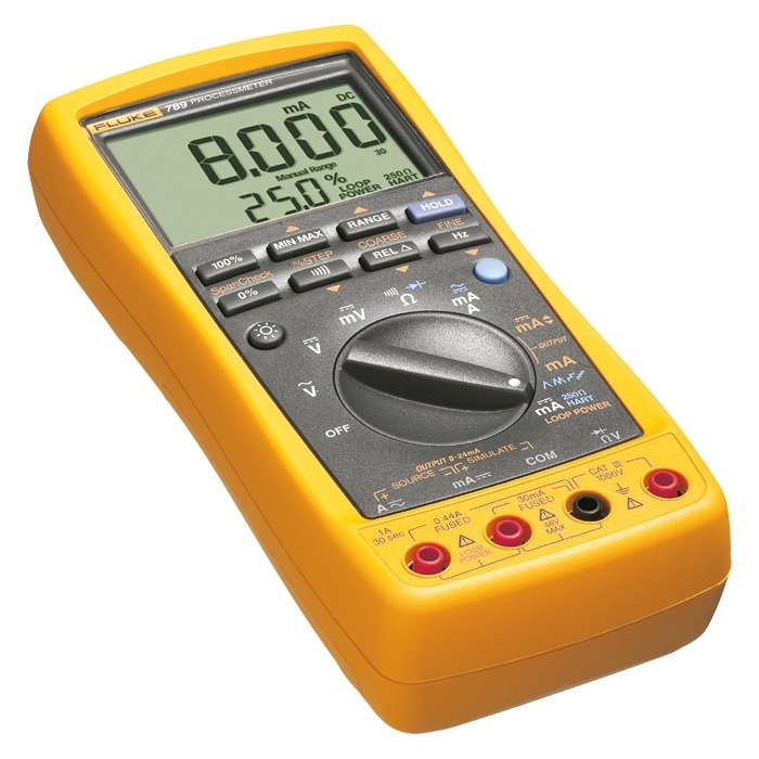 Das Fluke 789 ProcessMeter ist ein batteriebetriebenes Handmessgerät zur Messung elektrischer Parameter und zur Bereitstellung eines stabilen oder linear variierenden Stroms für die Prüfung von Prozessinstrumenten. Das Gerät ist außerdem mit einer integrierten 24-V-Schleifenstromversorgung ausgestattet.